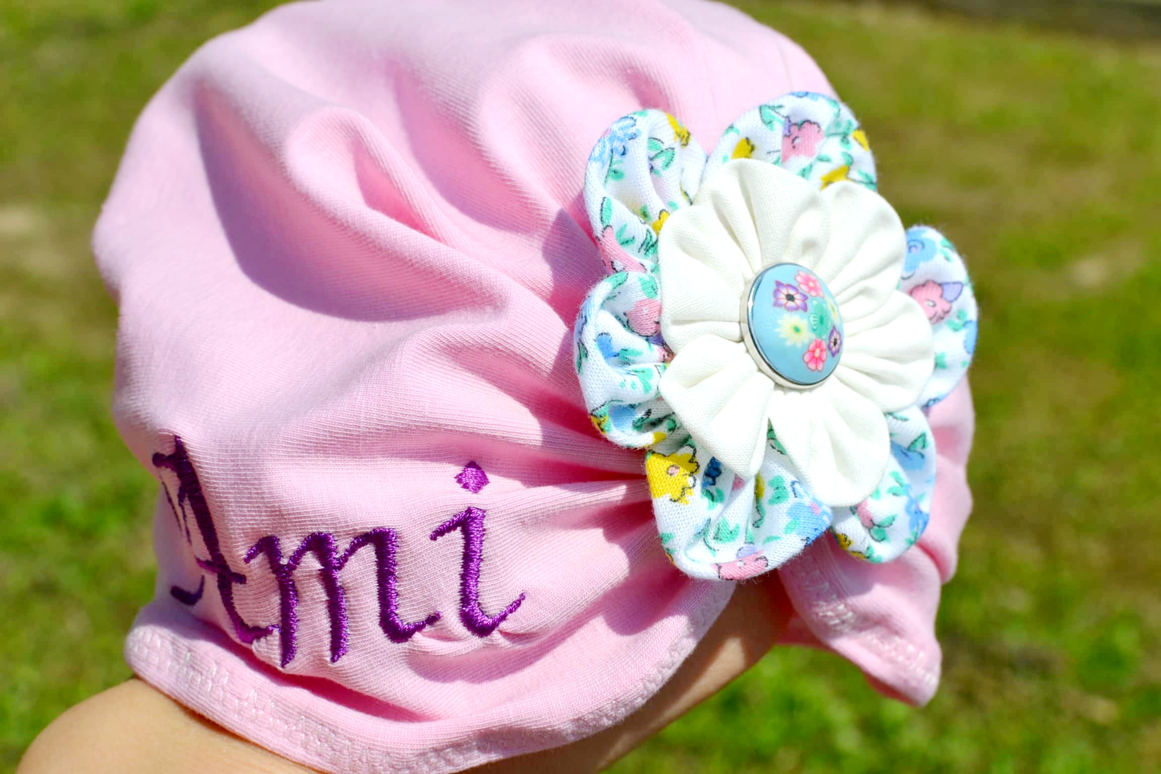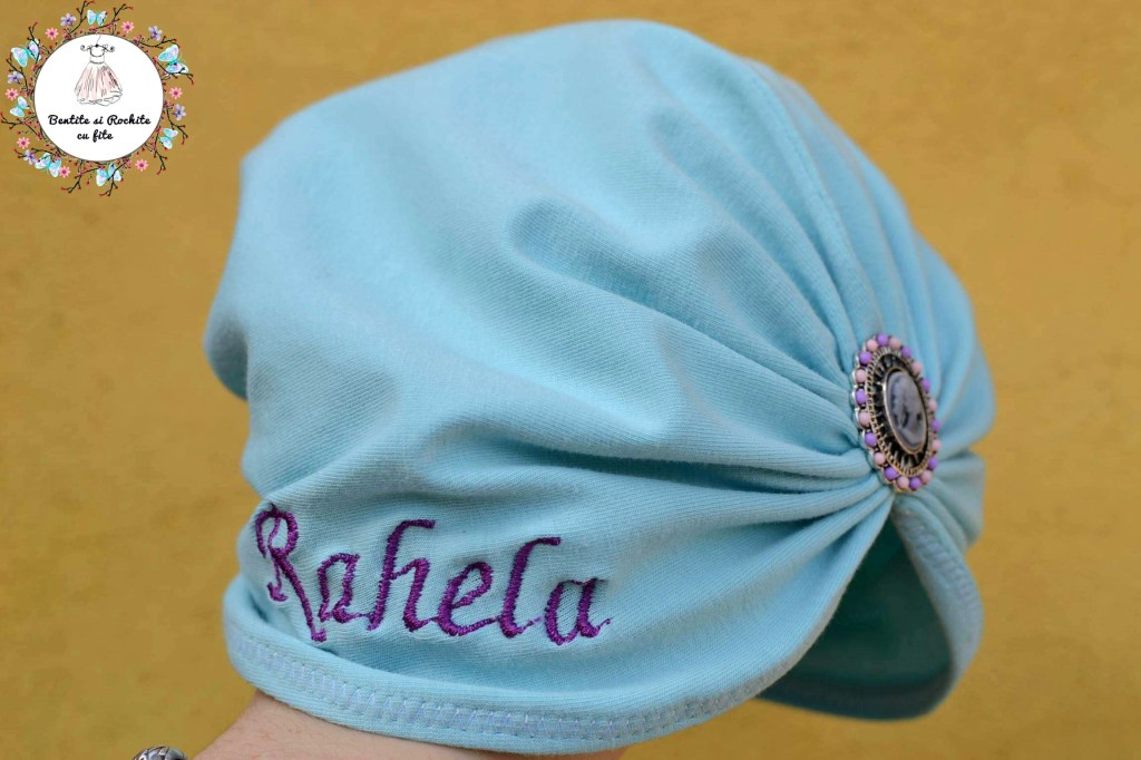 1. Turban brodat cu nume – 170 lei