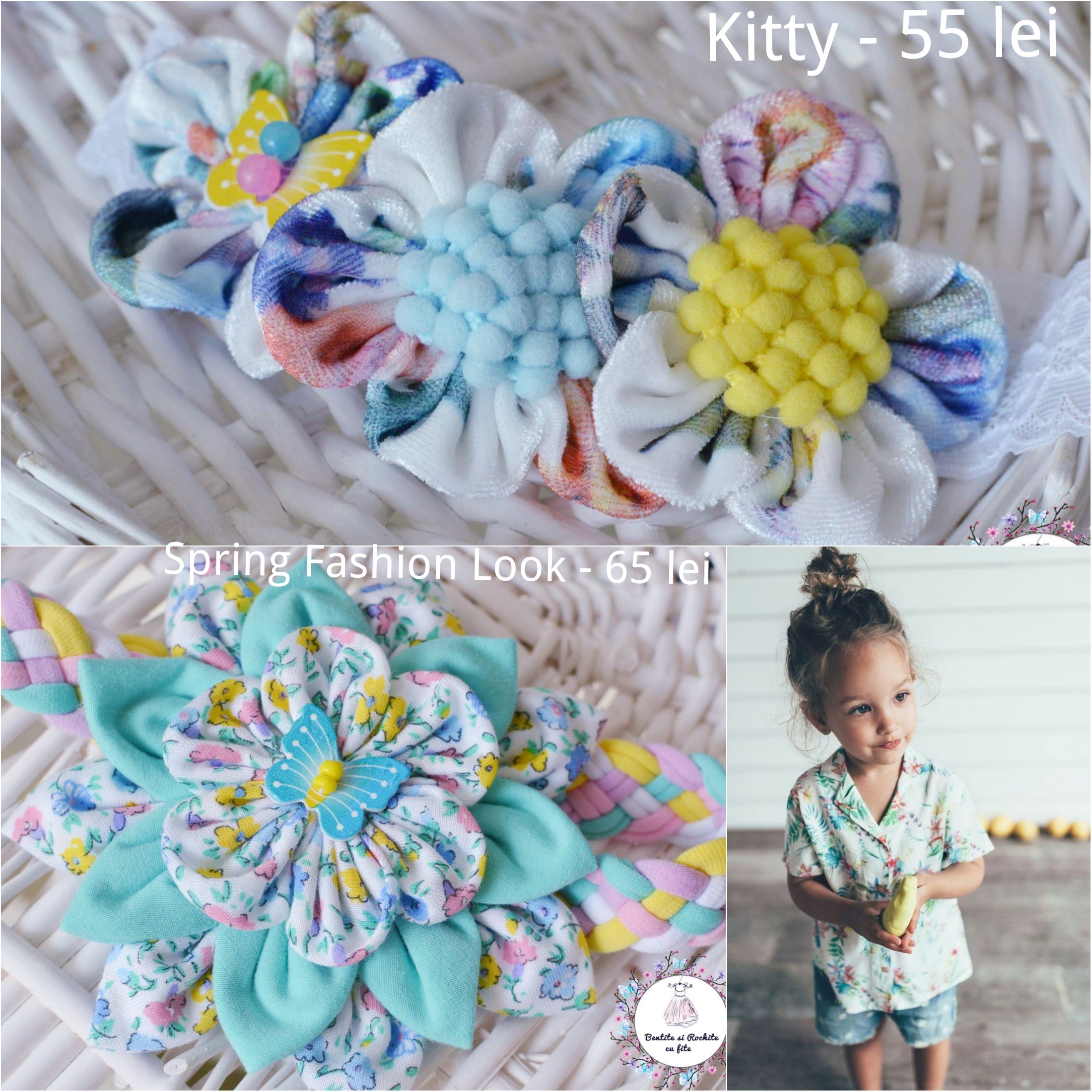 👉 Le poți purta în păr sau la cămașă, iar în pachet găsești și o bentiță asortată 💝